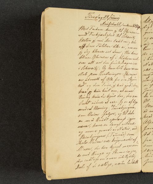 This page from Johan Thomas Lundbye's travel journal, created sometime in the early 19th century, presents us with a fascinating tableau of daily life seen through the lens of language. Script, or handwriting, is itself a potent symbol, capable of conveying a wide range of meanings, from the mundane to the deeply profound. We see lists, dates, and observations meticulously recorded. Lundbye documented daily expenses and events, using this journal to record his personal experiences and encounters. Consider how writing, as a motif, has appeared across cultures and eras. From ancient Egyptian hieroglyphs to medieval illuminated manuscripts, it has been used to document, communicate, and preserve knowledge. Think of the written word as a way to capture thoughts and experiences, giving them a life beyond the present moment. The very act of writing is deeply psychological. It allows us to give shape to our inner thoughts and project them into the external world. This process can evoke intense feelings, engaging with our subconscious on a deep, and often deeply personal, level. Ultimately, Lundbye's journal reminds us that handwriting is more than just a means of communication. It is a powerful cultural symbol that reflects the ever-evolving relationship between language, memory, and personal experience.