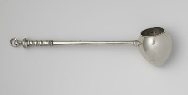 Editor: Here we have a natural trumpet, a signal trumpet made of brass dating from around 1800 to 1830. Its simple form and shining surface make it somehow majestic, despite its apparent utilitarian purpose. How does its shape influence our perception of it? Curator: Consider how the trumpet's form adheres to function. The cylindrical bore, the coiled tubing, the flared bell – each element contributes to its acoustic properties. Semiotically, the brass medium signifies resonance and projection. We must consider its very specific design – how do the various components enhance each other? Editor: So you’re saying the form isn’t just aesthetically pleasing, it's intrinsically linked to how the trumpet creates sound? It’s not just a shiny object? Curator: Precisely. The inherent properties of the material and construction dictate the experience. Notice how the artist or craftsman, by shaping this brass, directs not just its visual impact, but its sonic function, the form is its function. Do you see an intentional geometry present here, guiding your eye across it, dictating function and flow? Editor: Yes, I do, it is elegantly structured. It's amazing how form dictates its purpose! I hadn't thought about that before. Curator: Exactly! Considering the relationship between form and purpose allows one a new entry point when understanding art. It moves us beyond simply "looking at" and allows for "seeing" what we are engaging with.