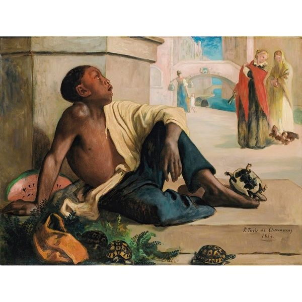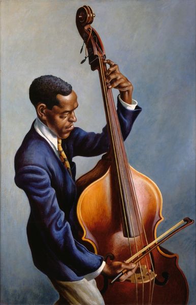 Editor: We’re looking at Albert Schindler's "Portrait of Emmanuel Rio," an oil painting from 1836 currently residing at the Art Institute of Chicago. What strikes me immediately is the contrast between the man's calm demeanor and the grand European cityscape visible through the window. What do you see in this piece? Curator: It's interesting that you highlight that tension. Considering the historical context, it is unavoidable that the portrait should invite the public to consider the portrayal and socio-political standing of individuals from the African diaspora in 19th-century Europe. How does Schindler position Rio within a Romantic aesthetic but simultaneously frame him through a colonial lens, even in his own home? Editor: A colonial lens? Could you elaborate? I didn't immediately pick up on that. Curator: Note the seemingly casual placement of objects: a horn and sheet music; personal, domestic items stacked below a small wooden table. Are these symbols of genuine comfort and cultural expression or subtle markers denoting a space shaped by European expectations and cultural assumptions about non-European people? Editor: I see what you mean. It's like the artist is both acknowledging Rio's individuality but also subtly defining his place within a European context. It is striking how those kinds of political forces might affect artistic composition. Curator: Exactly! Consider too the museum's role today. By exhibiting this piece, what narrative are we perpetuating? Are we actively challenging or simply re-presenting historical power dynamics? It's our responsibility to continuously re-evaluate these representations. Editor: This is a really complicated painting! I thought it was just a simple portrait, but it brings up all sorts of interesting and difficult questions. I’m glad you prompted me to rethink the political considerations when examining artworks! Curator: Indeed. Art offers more than aesthetic enjoyment. It holds up a mirror to society, reflecting its values and prejudices, often sparking essential dialogues.