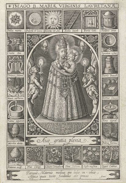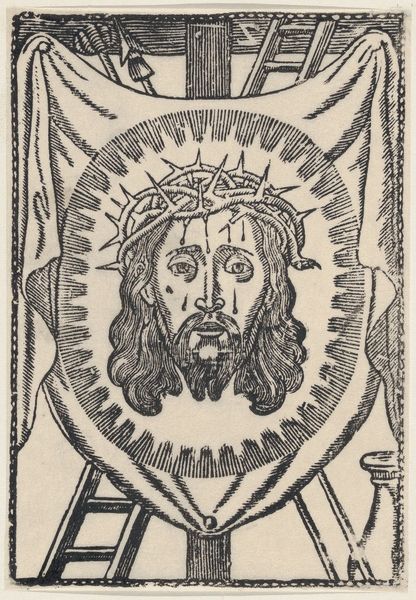Editor: Here we have an engraving from around 1750-1765, titled "Ecce Homo" depicting Christ. It’s a powerful image with a distinct Baroque flair, made even more poignant by its small size. I’m curious about the social context it was created in; what do you see in this piece that speaks to the culture of the time? Curator: This engraving, likely a devotional print, offers insight into the function of art within 18th-century religious life. Its small size suggests mass production and distribution, indicative of the Church's desire to disseminate imagery to promote piety. The "Ecce Homo" theme – Christ presented to the people – carries heavy socio-political weight, speaking to notions of sacrifice, power, and judgment, what do you make of Christ being centered but with limited dynamism? Editor: That's interesting – I hadn't considered the dissemination aspect. The centered but still nature seems to make it all more intimate, though the setting gives a different idea of grandeur, which the text reinforces. So was it to have the audience in intimate veneration and reflection? Curator: Exactly. These images acted as visual aids, prompting contemplation on Christ’s suffering and humanity’s sin. Note also the inclusion of text promising indulgences for those who pray before it. Do you see that text also functioning as an integral part of the artwork itself, shaping its reception and function in society? Editor: Yes, I do! The text directly interacts with the visual by incentivizing viewership to prayer for repentance. So the politics of forgiveness in play. I see a layered image, beyond just simple, single interpretation, which enriches the visual message itself! Curator: Precisely! By acknowledging this interplay of factors, we can better grasp the purpose art served in engaging with its audience and enforcing the role the institution played in its viewership.
