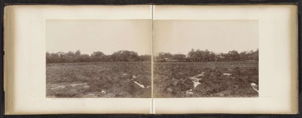 Curator: Standing here, we’re observing Robert Julius Boers’ "Huis aan bosrand," a gelatin-silver print believed to be created between 1900 and 1922. It currently resides in the Rijksmuseum. Editor: It's a bit of a gloomy scene, isn’t it? That stark black and white palette, the almost invasive thicket in the foreground... It feels a bit melancholic, somehow. Curator: I find that melancholy quite striking, especially when we consider pictorialism’s embrace of atmosphere. The hazy focus almost softens the starkness, drawing the viewer into that liminal space between civilization and nature. It makes me wonder about Boers's own relationship to this "edge of the woods". Editor: Pictorialism often sought to elevate photography to the status of art, right? By emulating painting styles? Here the framing is intriguing: those skinny trees create a barrier almost, and then that lonely house, a pale geometric form, seems almost trapped in the pictorial plane by this wall of trees and thick, tangled brush at eye-level. Curator: Precisely! There's this fascinating interplay between what is visible and concealed. The house, representing the familiar and domesticated, is simultaneously obscured and revealed. And with two side-by-side nearly identical frames, it's an intentional doubling of perspectives; are we meant to reflect our viewing experience? It also invokes certain photographic formats, stereoscopes in particular, where 3D-esque imagery allows you to insert yourself inside. Editor: It’s curious how realism blends with the artistry; a documentation is still so stylized and, as we noted before, quite gloomy. It makes you contemplate life on the fringe – the stark contrast between human and environmental forces. What was it like for those living in such lonely places? Curator: And doesn't that make this piece, seemingly small and unassuming, infinitely more evocative and moving? It’s about that search of finding stillness, finding isolation, perhaps finding a little pocket of yourself amidst it all. Editor: I’ll remember that feeling now; finding oneself at the margins, which feels appropriate given the actual house-on-the-edge-of-the-woods theme. Curator: And perhaps now the edges, as they come to be framed through photography, also come to tell stories.