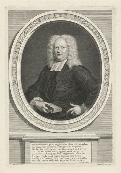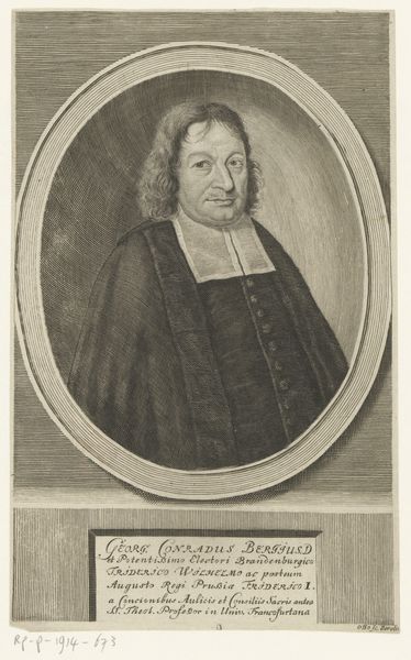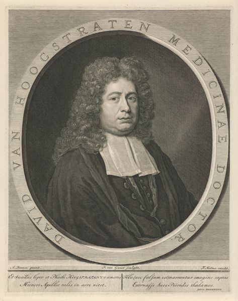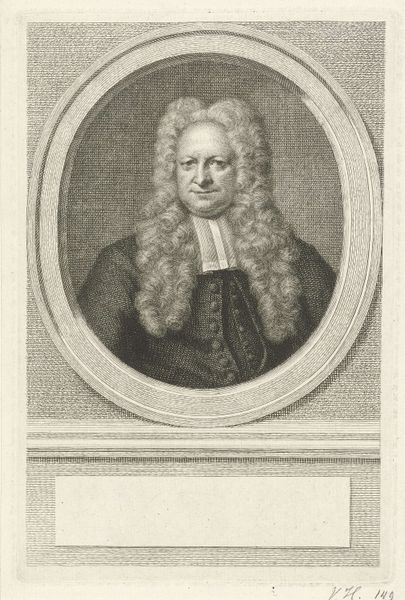 Pieter van Gunst created this engraving of Jacobus Basnage sometime between 1659 and 1724. Basnage, a Huguenot pastor, found himself a refugee due to the persecution of Protestants in France following the revocation of the Edict of Nantes in 1685. In this print, the formal presentation and elaborate wig speak to Basnage's status within his community, yet they also hint at the complex negotiations of identity faced by religious refugees during this period. How does one maintain dignity and authority while living in exile? The careful rendering of his garments and facial expression suggests a man determined to preserve his sense of self despite displacement. Consider the emotional weight of such a portrait: it serves not only as a record of Basnage’s likeness, but also as a testament to the resilience and adaptability required of those who are forced to rebuild their lives in unfamiliar lands. It's a reminder of the deeply personal dimensions of historical events.