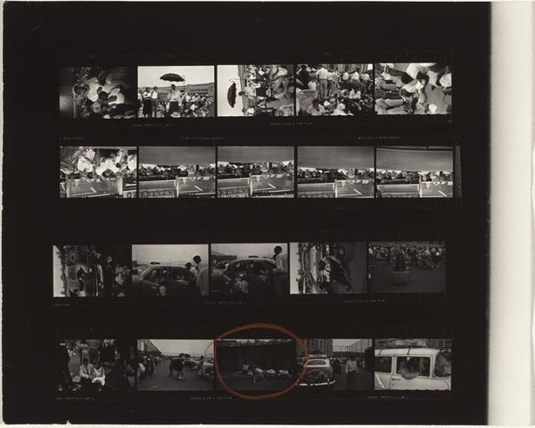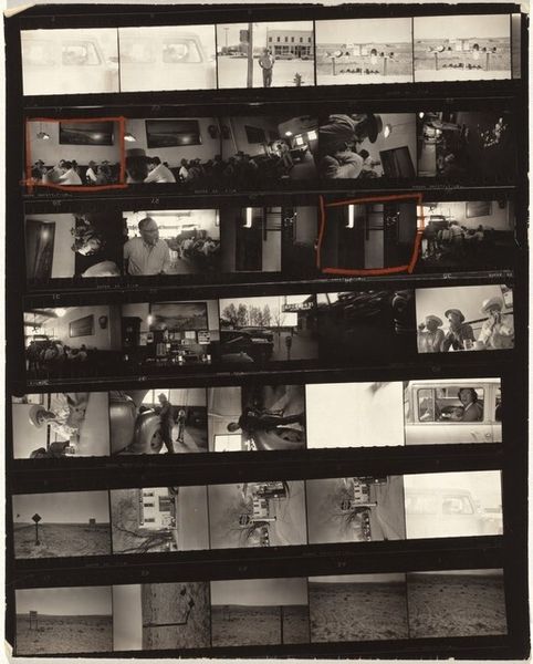 Robert Frank created this photographic contact sheet at the Metro-Goldwyn-Mayer back lot in Universal City, California; a series of images captured in one go. I love how Frank gives us everything here, the sense of art-making as a process. The darks are so dark they feel like physical material. The images move from a meeting, to a lake, to a dinner, to some buildings. It’s hard to know what to focus on. Our eyes jump between the frames, just like his. This jumping between images feels like looking into someone’s mind, the way different thoughts and impressions flow together in a stream of consciousness. The black and white adds a layer of grit. The photos almost look like sketches or notes. It reminds me of the work of Danny Lyon. It’s like a visual diary entry, open to endless interpretations.