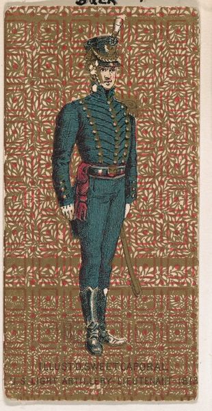 This image, produced around 1900 by W. Duke, Sons & Co., depicts King Kalakaua I within a heraldic design. The composition is dominated by a coat of arms, flanked by uniformed figures, and crowned with a regal coronet. The heraldic shield is bisected into quarters bearing symbolic flora and coloured bars, evoking traditions of European nobility while incorporating local motifs of the ‘Sandwich Islands’. The symmetrical arrangement of the figures strikes a pose familiar to many cultures—symbols of power, order, and governance. Consider how similar visual elements appear in different contexts. For instance, the motif of the crown can be traced back through various ancient empires, each imbuing it with new significances of authority. Note how such symbols resonate with a collective memory, engaging viewers on a subconscious level by evoking intense emotional states tied to notions of legacy and power. The heraldic symbols, the crown, and the ceremonial guards, present an instance of cyclical progression—how imagery resurfaces, evolves, and takes on new meanings across different eras and civilizations.