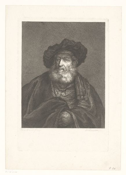 This is Jan Chalon's etching of an 'Old man with beard and cap', made in the Netherlands around 1770. Chalon was working at a time when the Dutch art market was changing, and there was growing interest in images of everyday people. The image creates meaning through visual codes, cultural references, and historical associations. Note the man’s clothing and demeanor. The relaxed pose and simple cap suggest a common person, perhaps a fisherman or craftsman. At this time, Dutch society was highly stratified. Artists like Chalon began to question those hierarchies. They challenged the traditional emphasis on depicting wealthy elites by creating dignified portraits of commoners. Looking at images such as this allows us to ask questions about the artist’s intentions, the sitter’s identity, and the broader social context of the artwork. We use primary sources, like letters or market reports, to understand the dynamics of the art world at that moment in history. Ultimately, the meaning of this etching is contingent on the social and institutional context in which it was made and received.