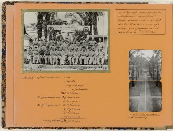 This page from an album was compiled in 1949 by sergeant-majoor Theunissen, documenting Queen Juliana's birthday celebrations on April 30th. The photographs, likely gelatin silver prints, depict festive activities. But these are not the celebrations in the Netherlands. The album page speaks to a complex history of Dutch colonialism. Consider the materiality of photography itself. It's a chemical process, industrial in scale by this time, used to document and disseminate images far and wide. In this case, it’s used to portray a constructed image of harmony in a colonial context. Theunissen’s arrangement is also telling. The photos are carefully adhered to the page, captioned and presented as a coherent narrative. The album becomes a crafted object, a testament to the selective framing of history. Ultimately, the album reminds us that even seemingly straightforward snapshots are carefully constructed artifacts, laden with social and political meaning.
