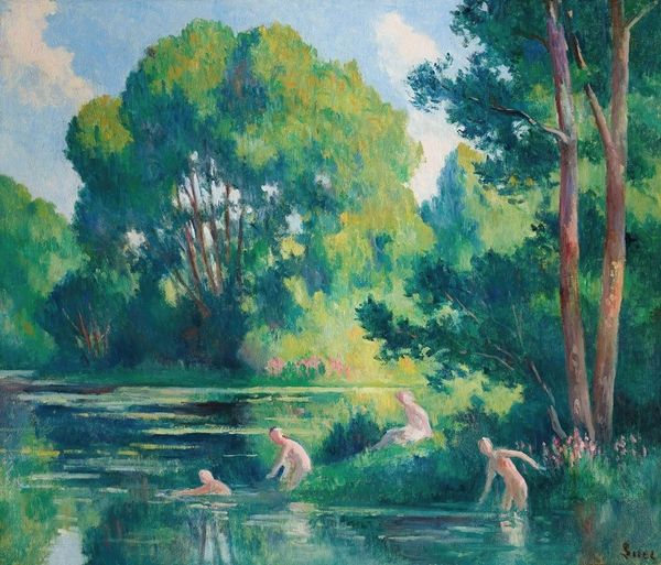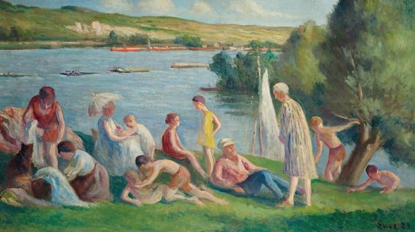 Maximilien Luce made "Plage a Mericourt" with oil on canvas, and it's like, whoa, check out these juicy, hazy colors! It’s not about precision; it’s about feeling, like a memory of a summer day. Luce’s touch is so immediate, it’s all about these luscious dabs of color laid down next to each other. The paint isn't trying to hide itself; it's right there on the surface, thick enough that you could almost peel it off. Look at the kids wrestling in the foreground – you can practically feel the heat radiating off them. Each blob and dab of color is a decision, a tiny little adventure right there on the canvas. Luce's paintings remind me a bit of Pissarro, but with an added dose of warmth and an interest in working-class leisure. But where Pissarro is all about close observation, Luce seems to be more interested in capturing the fleeting, ephemeral sensations of light and air. It’s this mix of formal experimentation with a deep love of human experience, that makes painting so endlessly fascinating.