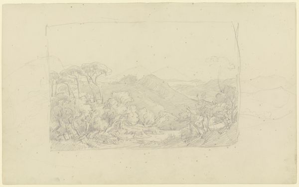 Ludwig Metz captured this Italian landscape with oil trees in a drawing at the Städel Museum. The composition unfolds through delicate lines and a subtle interplay of light and shadow, inviting us into a serene yet structured space. The drawing emphasizes horizontal expanse, carefully balancing the placement of trees and distant hills. Notice how Metz uses the texture of the paper to give depth to the scene. Linear precision defines the structure of each element, from the foliage to the undulating terrain. The subdued palette enhances the contemplative mood, evoking a sense of harmony and order. Metz's rendering destabilizes a conventional picturesque romanticism. Instead, his emphasis on structure reflects an intellectual and emotional engagement with landscape art.