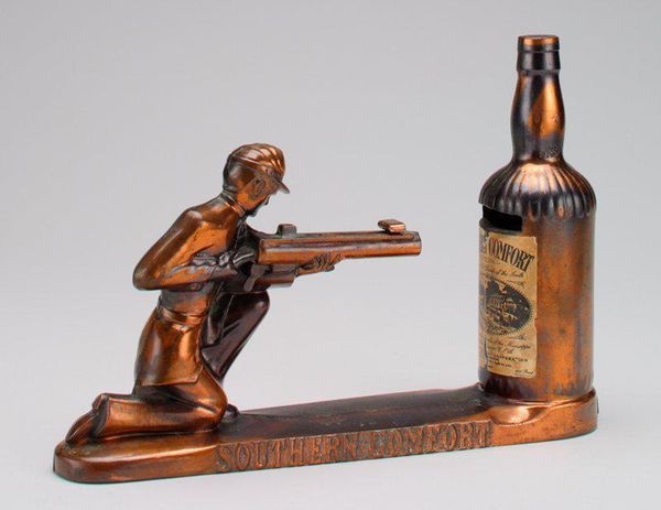Curator: Let’s consider this captivating little sculpture. Made around 1892, this metalwork, with glass elements, is playfully titled "Pump and Bucket (registering)". It's currently part of the Minneapolis Institute of Art's collection. Editor: Immediately, it reminds me of childhood, of miniature worlds painstakingly constructed. It gives the sense that I'm looking into someone’s dreams. What feelings does this miniature work evoke for you? Curator: My attention goes straight to the broader historical context of technological development in the 19th century and the industrial revolution, when objects like pumps would have become more prevalent. There's an immediate visual appeal. But this decorative artwork subtly alludes to larger transformations of labor, everyday life, and the commodification of resources. Editor: It also feels subtly ironic, doesn't it? Like a miniature factory shrunk into the realm of a toy. It is beautiful, and those details, that slight weathering, really lends authenticity to the scene depicted. But do you find the work inviting? I'm struggling with this somewhat "distant" feel of the entire creation. Curator: That’s a really good observation. Perhaps this is also speaking to class disparities of the time. Who had the access to tools? To natural resources? Where would that water flow, who is registering the process and keeping track of its function and impact? It's hard not to ponder questions of water access and privatization with even a sculpture like this, knowing that those inequalities persist globally. Editor: Exactly! Seeing it through that lens, you’re right, there is certainly an urgent call there about global access. Thinking more openly now, maybe its power is in inviting us into those critical intersections. The sculpture definitely embodies and triggers very interesting sentiments. Curator: Indeed. Thank you for helping me to really pause and think about those sentiments! It gives me hope for broader art accessibility and inclusivity. Editor: You're very welcome. I enjoyed exploring the depth in those ordinary objects of industrial history too!
