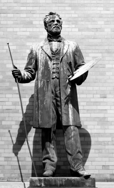 Vilhelm Bissen created this life-size sculpture of his father, H.W. Bissen, who was also a renowned sculptor. The statue encapsulates the intricate dynamics of artistic legacy and familial identity. Consider the weight of expectation and influence carried across generations. In the 19th century, artistic professions were largely patriarchal, with skills and status often passed down through families. Vilhelm's choice to immortalize his father in bronze speaks volumes about their relationship, as well as the son's desire to affirm and perhaps even extend his father's artistic contributions. Note how H.W. Bissen is depicted holding sculpting tools. This choice underscores the artist's identity, but also invites reflection on the roles of labor, skill, and creativity in shaping social status and personal identity. This sculpture serves as a poignant marker of personal and cultural history, prompting us to consider the complex layers of identity, legacy, and artistic lineage.