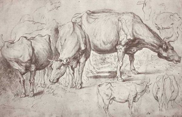 Rosa Bonheur masterfully rendered "Boeufs du Cantal" with graphite, capturing the animals in a study of form and texture. The composition is dominated by two figures, their bulk filling the pictorial space and creating a palpable sense of mass. Bonheur’s use of chiaroscuro – the strong contrast between light and dark – not only models the muscular bodies of the oxen but also imparts a sense of drama to the otherwise pastoral scene. Bonheur challenges the traditional hierarchy of subject matter. By focusing on animals with such intensity and detail, Bonheur elevates them to a level of significance usually reserved for human subjects. This shift mirrors the broader philosophical currents of the time, questioning established categories and values. The textured graphite work captures the vitality and presence of these animals, imbuing the drawing with a vibrant energy. In this drawing, Bonheur invites us to reconsider our relationship with the natural world, prompting a dialogue about our understanding of and respect for non-human beings.