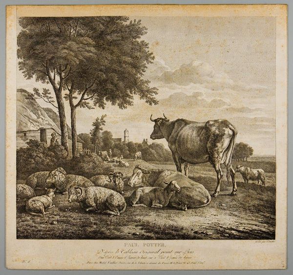 Editor: This is "Satyrs and Bacchante Watching Flocks" by Jean-Baptiste Le Prince. It's an etching, and I'm struck by the almost casual arrangement of figures. What do you see in this piece, especially regarding its making? Curator: I see a reflection on the labor involved in creating idyllic imagery. The etching process itself, a form of reproducible labor, democratizes the pastoral scene. How does the mass production of such images affect our understanding of leisure and labor in the 18th century? Editor: That's fascinating! I hadn't considered the implications of reproduction on the subject matter itself. Curator: The materiality of the print – ink on paper – becomes a commentary on the commercialization of the pastoral ideal. It really makes you think about who this was made for. Editor: Definitely something to consider!