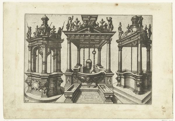 Johannes or Lucas van Doetechum created this print titled 'Binnenplaats met een galerij' which translates to 'Courtyard with a Gallery', and it now resides at the Rijksmuseum. Prints like this one played a crucial role in disseminating architectural ideas during the Renaissance. At the time, architecture was deeply entwined with notions of power, civic identity, and social order. The courtyard design here evokes a sense of idealized space and order, which was particularly relevant in the context of the Dutch Republic's aspirations for social harmony and economic prosperity. Consider how the print invites reflection on the dynamics between private and public life. Courtyards often served as spaces for social interaction, but they also provided a sense of enclosure and privacy for the inhabitants of the building. The print presents an opportunity to contemplate the ways in which architectural spaces shape human behavior. Through its depiction of architectural space, the print reflects societal values, dreams, and the ever-present negotiation between the individual and the community.