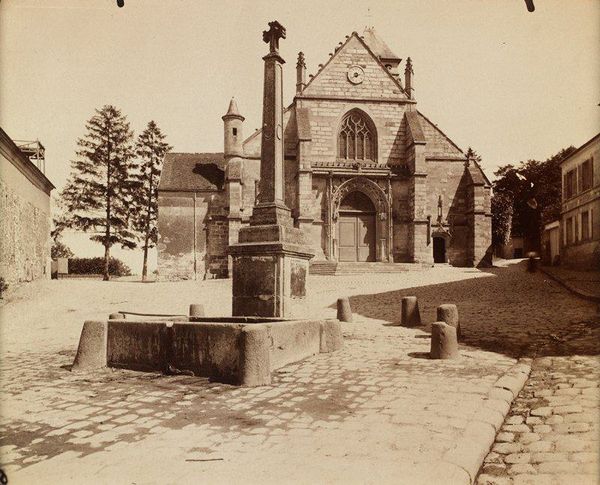 Editor: Looking at Edouard Baldus's daguerreotype, "Eglise d'Auvers," taken in 1855, I'm struck by the image’s stoic quality. The church looms, steadfast and impressive. What’s your take on its historical context, especially given Baldus’s career? Curator: This image isn't just a picture of a church; it’s a record of French ambition during a period of significant social and political change. Baldus was heavily involved in documenting architectural projects commissioned by Napoleon III, wasn’t he? Editor: Yes, he was involved in several major commissions! Curator: This image shows a specific kind of engagement: documenting and implicitly validating sites and spaces of historical significance. Baldus was also documenting the shifting perception of historical places. It represents the cultural power these monuments embodied in the mid-19th century. How do you think photography itself impacted views of architecture at the time? Editor: I suppose photography allowed a wider audience to appreciate architectural achievements, especially as reproducibility increased over time. But was it ever seen as… too accurate, or maybe soulless compared to other art forms? Curator: It’s an interesting point! The accuracy granted prestige, lending weight to architectural projects in a way that drawings may not have achieved. Baldus was producing "truthful" representations of grand architecture that validated the regime’s ambition, connecting the present with a curated vision of the past. Editor: So it was a political tool, showcasing France's architectural heritage, while also perhaps signaling a sense of national pride and continuity. Curator: Precisely! And by appreciating these complexities, we gain a deeper understanding not only of the photograph itself, but the social forces at play in its creation and reception.