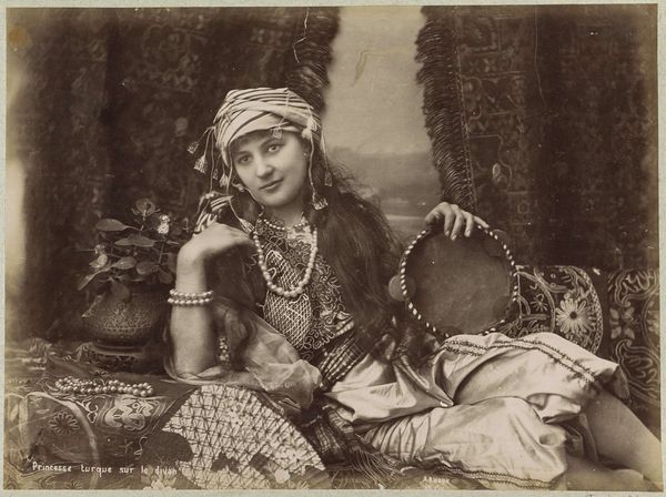 Editor: This is Julia Margaret Cameron’s "Balaustion," a silver print from 1871, currently housed at the Art Institute of Chicago. I'm really struck by the textural quality and almost dreamlike state achieved through the silver printing process. How do you see this portrait interacting with the means of its production? Curator: This image presents a fascinating case study in the commodification of artistic labor. Consider the sittings required to produce the work. Photography in this era relied upon a time consuming and tedious collaboration between photographer and sitter. Editor: It must have been difficult to get people to pose for long periods. Curator: Absolutely, particularly in an era less accustomed to the lens. Think of Cameron's access to her subjects within the privileged circles she occupied, and then consider the chemical processes themselves. Silver, a precious metal, transformed here into both a representational tool and an object of beauty. How does the inherent value of silver as a material inform your reading of the portrait? Does it elevate the sitter, the artist, or both? Editor: I hadn't really considered the social implications of using silver in that way. So, the photograph itself becomes an object of value, imbued with the sitter’s status and the labor and materials needed for it's construction? Curator: Precisely. And look at the clothing, potentially sourced through the elaborate global trade networks of the time. What was the value placed on it by those that made it and by Cameron herself when making the portrait? Cameron transforms material and sitter into object, inviting the viewer to engage with the complex exchange that happens through a photograph of this nature. Editor: I will definitely look at photographs in a different way now, understanding it more as a meeting place of material economies. Curator: Indeed. It highlights how so-called "art" isn’t separate from the world, but deeply embedded in material processes and societal power dynamics.