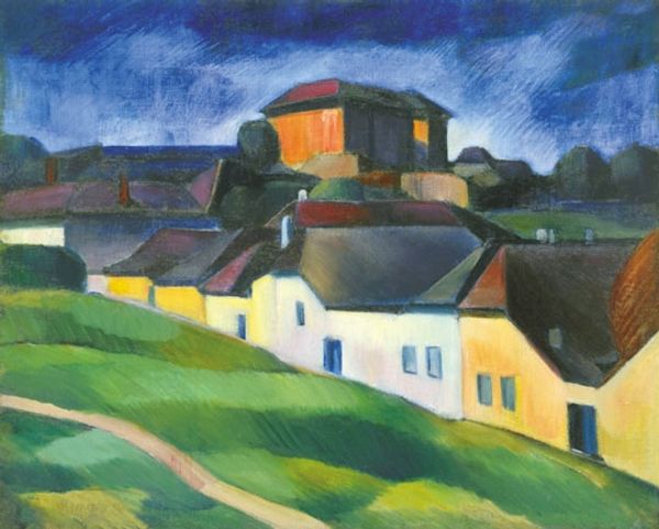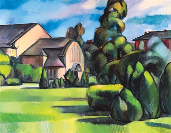 O. Louis Guglielmi created “Houses and Street” using oil on canvas. Although undated, it seems likely to have been made in the 1930s. Guglielmi often turned to urban landscapes, like this one, to grapple with the effects of modernity on American life. The buildings are simplified into geometric forms, almost like children's blocks, but the palette is muted and somber. The effect is eerie and unsettling. During the interwar period, many artists were concerned with the alienating effects of industrialization and social changes. The clean lines and flattened perspectives recall the Italian “Metafisica” movement, which aimed to portray the strangeness of familiar places. But Guglielmi gives the style a distinctly American inflection through his choice of subject matter, creating a specifically American version of modern alienation. By researching the artist’s biography and the cultural context of the time, we can better understand the social meanings embedded in these seemingly simple shapes.