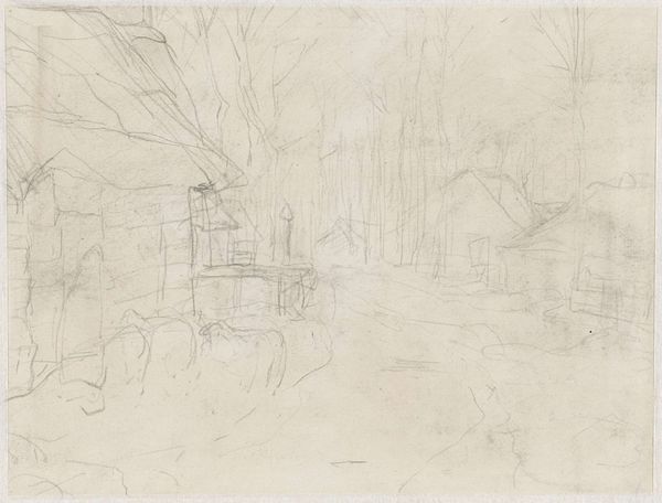 Curator: So, we're looking at Anton Burger's "Yard with Stairs," a graphite, ink, and pencil drawing on paper, here at the Städel Museum. What strikes you first? Editor: That it feels like a memory! Like sifting through faded photographs found in an attic. Hazy, impressionistic, peaceful. Almost melancholic. Curator: It’s interesting you say that. Burger was very much working within a particular moment of German art that emphasized realism. This piece feels like a direct observation of everyday life, far from grand historical narratives. Editor: "Everyday life," sure, but elevated. I love the way the light and shadow play together. It gives the scene a depth and almost a secret life—especially around the foliage and those weathered steps. It’s very evocative. Makes me want to fill in the gaps. Curator: And the lack of sharp details? It perhaps encourages the viewer to project their own experience, their own memories, onto the scene. This resonates with broader debates about representation in art. Whose stories were being told, and how? Was the academic style the only acceptable form? Editor: Well, art can be academic and still pulse with emotion, but I know what you mean. This…it's accessible. Like you’re invited into a quiet corner. Curator: And remember, the museum space itself plays a role in that accessibility. A work like this, hung in a gallery like this one, gains a certain authority, a validation of its subject matter. What was considered worthy of preservation? Who made those decisions, and what biases did they hold? Editor: Right, which means the artist probably didn't see this corner as art worthy... Perhaps it was just part of a larger series that focused more on the building as an architectural ensemble. So fascinating, seeing what speaks to whom across time. Curator: Precisely. I find myself reflecting on the social landscape surrounding Burger when this work was made. It brings this work to life, breathing space into its textures and gentle rendering. Editor: Absolutely. Looking closer now, it reminds me to embrace a little imperfect charm of the present day. There is beauty everywhere around.