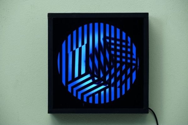 Curator: Immediately, it's that dance of dark and light that grabs you, isn't it? A shimmering constellation caught in a net. Editor: Indeed. We're looking at Grazia Varisco’s, "Schema luminoso variabile RR66", created in 1969. The interplay of geometry here is rather sophisticated. Curator: Sophisticated, yes, but also playfully disorienting. Like staring into a very stylish abyss, where rules bend and light teases. It gives the eye no easy resting place. Editor: That disruption is carefully calibrated through layered, repetitive patterning. Each unit interacts in such a way to disturb stable perception, prompting an exploration of how visual structures create our realities. Curator: You put it so formally. I feel she's pulling at the edges of what's real, suggesting that maybe what we see isn't all there is. Or, maybe, it's all just shimmering possibility, right at the point where darkness kisses the light. It evokes a rather liminal, and maybe, just a bit naughty kind of mood for me. Editor: I would suggest her intent stretches past simple naughty pleasures. By methodically deconstructing stable visual systems, Varisco provides a critique of representational paradigms. The patterns, despite the title which gestures towards light, call out not just light but the active role viewers have when looking at the piece. Curator: Well, whatever highfalutin art speak is conjured, I still think she wants us to play, to lose our footing a little, to marvel at how much is hidden in plain sight, or maybe isn't even there. Editor: Yes, its variable schema reminds me how forms can destabilize perception. Each diamond and shadow engages viewers beyond aesthetic delight, to invite contemplation regarding our comprehension and visual decoding strategies. Curator: It makes me think how little we grasp in the big, sweeping chaos around us... but it also fills me with a kind of exhilaration at the possibilities shimmering just beyond what we think we see. Editor: Precisely, she challenges static interpretation, offering a paradigm where perspective reshapes structure and knowledge—ultimately questioning stable frameworks for art itself.