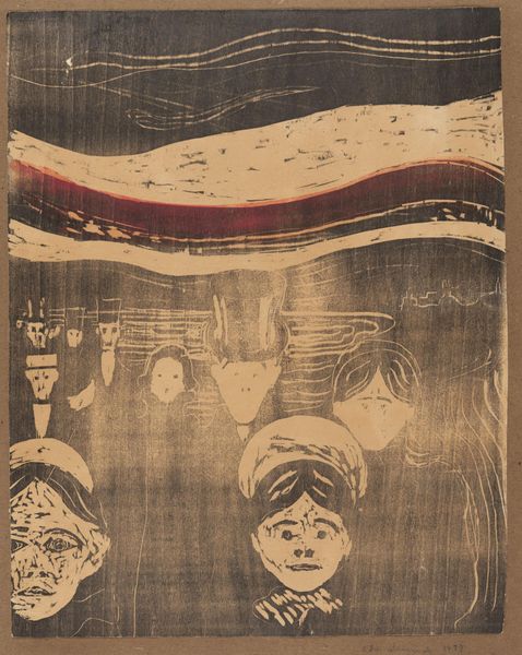 Edvard Munch made this woodcut print, called “Angst”, using knives and gouges to carve a design into a block of wood. The remaining raised surface was inked and then printed onto paper. Woodcut is a relief printing technique, one of the oldest forms of printmaking. Unlike painting, which allows for the direct application of color, printmaking involves a more mediated, labor-intensive process. The artist must first conceptualize the image, then painstakingly carve it into the wood. In “Angst,” the stark contrast between black and white amplifies the emotional intensity of the scene, filled with distorted faces. The grainy texture of the wood adds a raw, visceral quality to the print. Munch wasn’t just interested in expressing emotion; he was deeply engaged with the possibilities and limitations of the woodcut medium. He made prints in editions, which ties his practice to the wider social issues of labor, politics, and consumption. Understanding these choices invites us to see beyond the subject matter and appreciate the technical skill, and conceptual depth of Munch’s work.