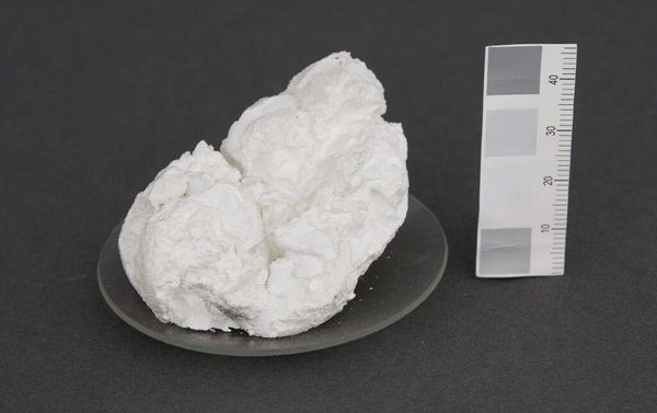 Editor: Here we have "White Lead," a pigment manufactured by Wadsworth, Howland & Co. The chunks of white are quite striking, almost like sugar cubes on a delicate plate. What's your take on this seemingly simple material? Curator: Ah, deceptively simple! White lead carries a heavy history. It was the pigment of choice for centuries, lending its brilliance to masterpieces. But at what cost? Its toxicity haunted artists, a bittersweet trade for luminous color. It makes you wonder, doesn't it, about the hidden stories within our materials? Editor: Definitely something to ponder, the cost of beauty. I'll never look at white paint the same way again! Curator: Precisely! It invites us to consider the artist's touch, and the unseen hands that manufactured it.