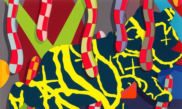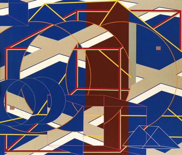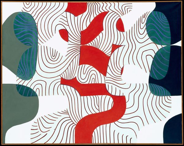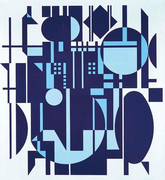 Editor: So, this is Michael Craig-Martin's "Full Life" from the Tate collection. It's a large-scale work, with what appear to be household objects outlined in white against a strong blue. What do you make of the stark presentation? Curator: It highlights the industrial processes involved in both the creation of the artwork itself and the production of the depicted objects. Look at the flatness, the graphic quality – it draws attention to the materiality of paint and the act of making. Do you see how the outlines deny any illusion of depth or volume? Editor: Yes, it flattens everything, making it almost like a blueprint. Is that a comment on consumerism or the disposable nature of these everyday objects? Curator: Precisely! The work becomes a record of material culture, emphasizing the means of production and consumption, rather than any inherent artistic value. What implications do you think follow? Editor: That's a great point. I hadn't considered the work as a record, it really changes the way I see it.