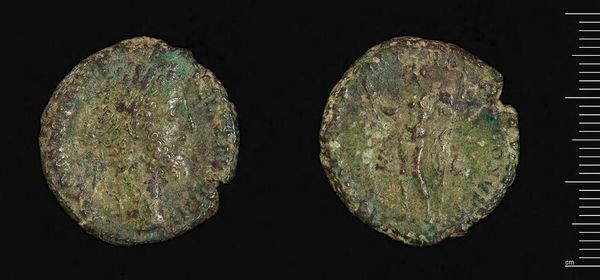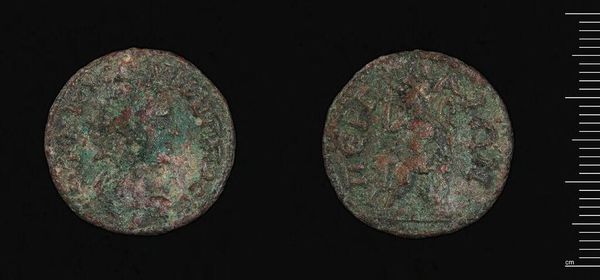 Curator: This is an Antoninianus of Cornelia Salonina, likely minted in Mediolanum, which was Roman Gaul, during her reign as empress. The weight is just over 3.5 grams. Editor: The coin has such a palpable aura of age and use. It is also very small. It really makes one wonder about the hands it passed through and how the materials have transformed over time. Curator: Absolutely. As Salonina, the wife of Emperor Gallienus, she occupied a unique, though often unstable, position in a male-dominated power structure. Coins like these were not just currency; they were a form of propaganda, reinforcing her image and role within the Roman Empire, though her power ended with Gallienus's assasination. Editor: Seeing how worn the coin is, you almost feel the labor involved in creating it, the materials extracted and processed. It is humbling to consider the raw matter, human action, and social relations embedded in such an object. Curator: It’s true, the coin embodies the complex intersection of gender, power, and representation within the socio-political context of the Roman Empire. Thank you. Editor: And the material conditions that made that intersection possible.