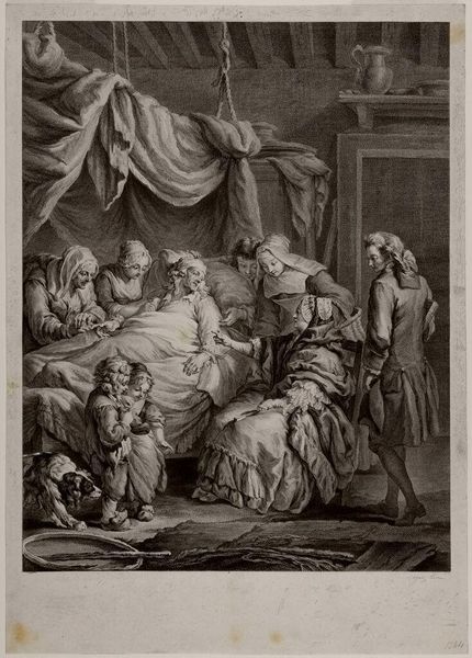 Anthonie Blocklandt made this print of Saints James Major, Bartholomew, and Thomas using the intaglio process. Intaglio refers to printmaking techniques in which the image is incised into a surface, and this is typically a metal plate. Look closely, and you'll see a network of fine lines, all of which had to be manually engraved into the metal. Ink is then applied to the plate, and the excess is wiped away, leaving ink only in the incised lines. Finally, the plate is pressed onto paper, transferring the image. The result has a crisp, linear quality, ideally suited to Blocklandt's classically inspired scene. The three saints are arranged in a composition of flowing robes, facial hair, and resolute gazes. Note the careful attention to light and shadow, achieved entirely by the density and direction of the engraved lines. This kind of printmaking demanded skilled labor, patience, and precision, raising it beyond mere reproduction. Prints like this allowed for the wider circulation of images and ideas, blurring the lines between craft, art, and commerce.