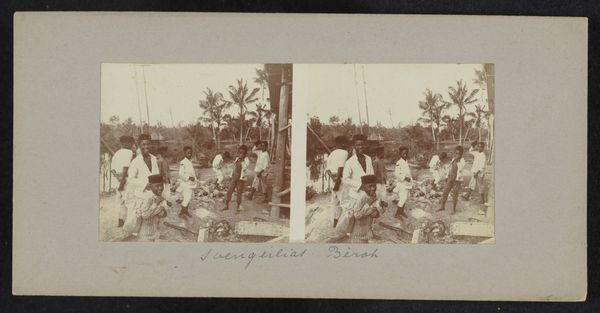 This is a photograph by Robert Julius Boers, "Kinderen bij een tinmijn", though we don't know exactly when it was made. The sepia tones make the scene feel like a memory, a glimpse into a world both familiar and distant. It’s all about texture here, isn't it? The rough bark of the tree, the coarse clothes of the children, all rendered with a beautiful clarity. You can almost feel the humidity, the weight of the tropical air. Look at the way the light catches on the edge of the mining pool. It’s a simple moment, but it’s full of life. This photograph reminds me a little of Jacob Riis's documentary photography. It's an ongoing conversation about how we see the world, and what stories we choose to tell. Art is always an invitation, and this photograph is no different, it suggests that there may be more than one reading of the image.
