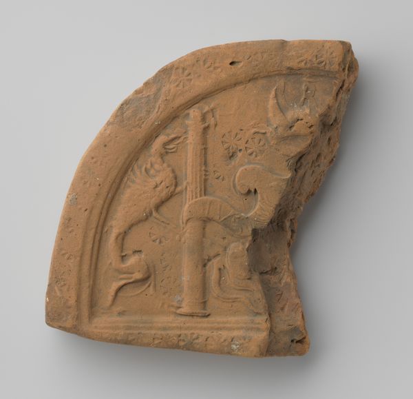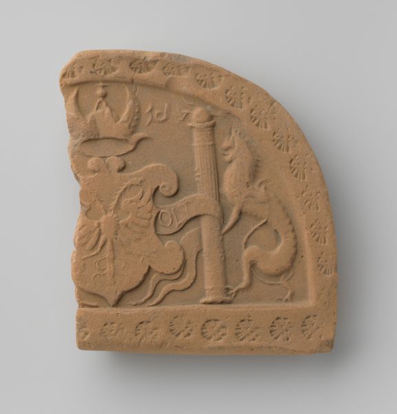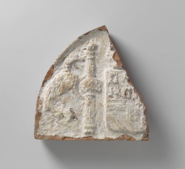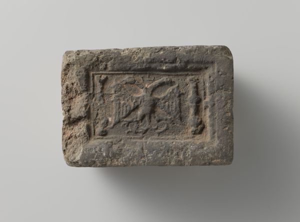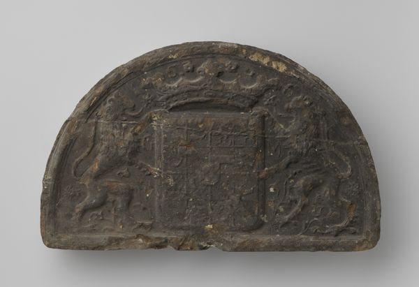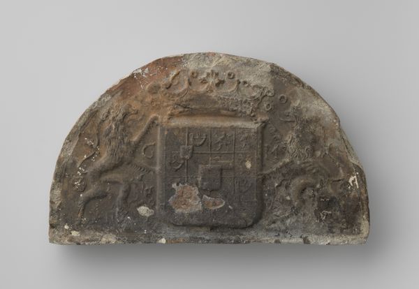 Curator: Ah, the Rijksmuseum. It truly holds some gems, like this brick relief depicting a bust of Charles V within a window niche. It dates roughly between 1500 and 1600, attributed to an anonymous artist. Editor: It's amazing what narratives reside within seemingly mundane objects! My first thought: the somber weight of history, quite literally grounded in this chunk of clay. You can sense the imprint of someone long gone trying to reach out. Curator: Absolutely. The carving has a simple grace. Observe how the anonymous artist captures the essence of the emperor. The architectural framing—the arched window—acts like a proscenium arch, really putting him on stage. Editor: The framing is interesting indeed; the figure is clearly set within a carefully structured visual hierarchy. It speaks to the early modern interest in perspective and portraiture, and that stark window recess makes the gaze intimate. It suggests enclosure and introspection as well, I feel. Curator: I see what you mean. There is this almost secretive presence. And note the material itself—brick. Such an ordinary, even humble material. To immortalize a ruler in brick, rather than marble or bronze… Editor: Right? There's a kind of democratic impulse, making Charles V accessible and durable. It resists notions of untouchable glory, embedding royalty in everyday material and perhaps subtly hinting at accountability to a wider community? Or am I reaching a bit far? Curator: No, no, it resonates! It feels right that Charles is present and available but somehow just beyond our grasp, trapped within that form. It really forces us to think about not just the sitter, but also the observer in a historical sense. What did it mean to gaze on an emperor in 16th-century Holland? Editor: Exactly. The artist made an ordinary brick, well, extraordinary by giving it layers of complex historical depth to mull over! Curator: So true. Next time I see a brick wall, I'm sure to see stories instead of just clay! Editor: I concur. Here’s to history under every brick, I say.