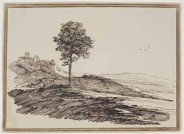 Editor: This is Louis Michel Eilshemius' "Landscape with House," a small ink drawing held at the Harvard Art Museums. It has a whimsical and almost naive feel. How might we understand Eilshemius’ choices in the context of his time? Curator: Eilshemius worked during a period when academic art was heavily critiqued, and artists were exploring various forms of expression. His deliberately simplified style might be a commentary on the art establishment, a rejection of its rules, and a move towards a more personal, almost anti-establishment form. What social trends do you think influenced his aesthetic choices? Editor: That’s interesting; perhaps the rise of industrialization made artists yearn for simpler, more pastoral scenes? Curator: Precisely. And consider the role of galleries: how did they influence what art was considered valuable or important? Editor: I never thought of it that way. It’s more than just a pretty picture; it's a statement! Curator: Indeed. Art often reflects and reacts to the world around it, sometimes in subtle, sometimes in very direct ways.