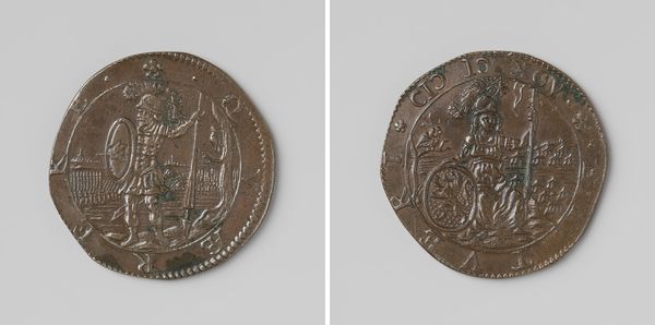 This silver coin commemorates Admiral van der Does's voyage to the Canary Islands. The process of minting such a coin involves skilled labor, from the initial design to the cutting of dies and the striking of the metal. The material itself, silver, carries cultural significance; it's a valuable metal and a marker of wealth and trade. The images stamped onto the coin are rich with social context. On one side, a ship sails the ocean, representing Dutch maritime power and ambition. The other side shows a landscape, perhaps alluding to the Canary Islands themselves, or more broadly to colonial expansion. Consider the number of coins like this that would have been produced, each one a small token of a vast economic and political system. Minting coins was a critical function of the state. Understanding these coins means appreciating the complex relationships between labor, materials, and power.