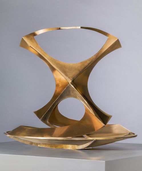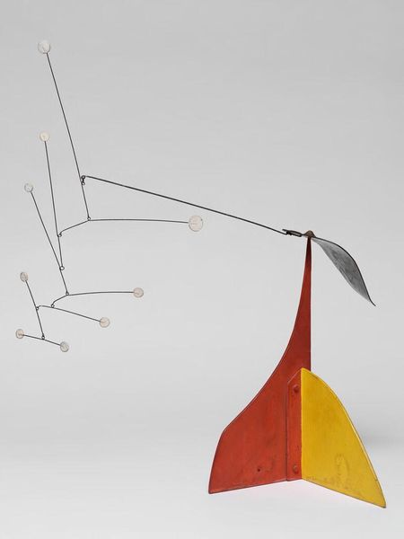 Curator: Here we have Hannes Beckmann's "Construction in Sheet Metal," an intriguing sculpture currently residing at the Harvard Art Museums. Editor: My first impression is one of delicate balance; the geometric shapes create a sense of precarious stability. Curator: Beckmann's work often intersects with the social and political upheaval of his time; one wonders if the sculpture reflects the tensions of the interwar period? Editor: Perhaps. But the formal qualities are equally compelling. The contrasting colors, the angularity, and the way the light plays across the surfaces create a dynamic visual experience. Curator: It's interesting how you draw attention to the interplay of light, especially considering the potential symbolic weight of geometric forms in art history. Editor: Indeed. And through a close examination of materiality and composition, we can find both artistic intent and social commentary. Curator: A fitting end to a discussion that bridges form and context. Editor: Illuminating how art can reflect both our inner and outer worlds.