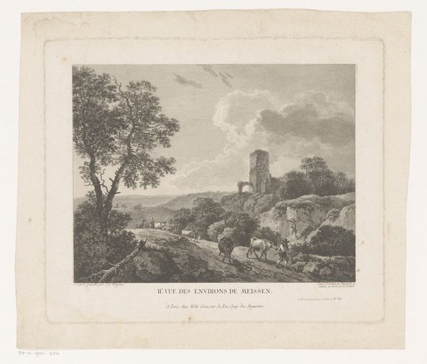 Here we see J.L.L.C. Zentner's etching, a landscape punctuated by a ruined castle, a haunting symbol of time's relentless march. The ruin, once a proud edifice, speaks of lost grandeur, echoing motifs found in Piranesi's etchings of Roman ruins. But Zentner infuses this symbol with a melancholic intimacy, moving from the grand to the personal. We find this motif across centuries, like the crumbling walls in Caspar David Friedrich's landscapes, each whispering tales of human ambition humbled by nature and time. Consider the psychological weight of ruins. They remind us of mortality, of the inevitable decay that awaits all human creations. Yet, they also hint at resilience, at the stories that linger amidst the stones. They represent a collective memory, a subconscious awareness of cycles of destruction and rebirth. The ruin is not merely a backdrop; it is an active participant in the human drama, ever changing, constantly resurfacing in the collective consciousness.