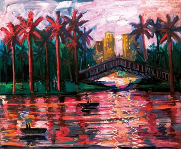 LeRoy Neiman made this painting of the Brooklyn Bridge with big blocks of pure color, building up the image from a kind of abstract patchwork, a method that treats the subject almost like a collection of sensations. Looking closely, the paint is applied really thickly, with visible strokes and textures; you can almost feel the energy of the artist's hand as he worked. Neiman doesn’t try to hide the process, instead he amplifies it. I’m drawn to how the light seems to dance across the surface of the water, created with quick, vibrant strokes of blues, greens, and yellows. These marks aren’t just descriptive, they are expressive and capture the movement and reflections in a way that feels both chaotic and harmonious. Neiman’s gestural approach reminds me a bit of Joan Mitchell’s abstract landscapes. Both artists use color and brushwork to convey a sense of place and emotion, embracing the messy and unpredictable nature of painting. It’s a reminder that art isn’t about perfect representation, but about capturing a feeling or an experience, leaving room for the viewer to bring their own interpretations.