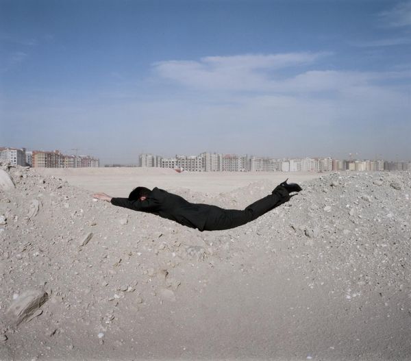 Richard Misrach captured this photograph, "Desert Croquet #1 (Deflated Earth)," in the stark landscape of Nevada’s Black Rock Desert. Here, a deflated globe lies forlornly on the cracked earth. The globe, a potent symbol of our world, is rendered powerless, evoking a sense of melancholy. This echoes motifs found throughout art history, where earthly globes represent dominion. Think of medieval orbs held by rulers signifying their temporal power. Yet, Misrach presents a subverted symbol. It recalls the vanitas tradition, where globes, skulls, and hourglasses symbolize the futility of earthly pursuits. The deflated globe is a powerful metaphor for environmental concerns. It speaks to a collective anxiety about the planet's fate, tapping into our shared subconscious fears of ecological collapse. It serves as a poignant reminder of our planet's fragility. This deflated earth, lying in the arid expanse, is a stark and affecting symbol, imbued with a sense of loss.