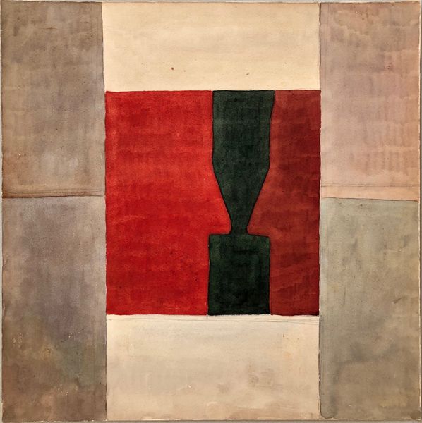 Curator: Here we have Thiago Boecan’s “EC20-E1,” an acrylic on canvas completed in 2020. It’s an intriguing example of hard-edge painting and color field sensibilities. What’s your immediate take? Editor: Austere and unsettling, I find. The blocks of deep red and muted ochre feel dense, like repressed anger. Is this about spatial relationships or something more charged? Curator: The tension definitely exists. It is fascinating how Boecan balances a flat picture plane with the illusion of depth through color interaction. Consider the red rectangle bisected by that pale ochre line – the strategic use of color to activate pictorial space is quite clever. Editor: I agree, and yet the palette—these somber, earthy tones—feels freighted with unspoken histories. Knowing Boecan’s background, could this be interpreted as a visual reckoning with Brazil’s complex colonial past? These rigid geometric forms contrast so sharply with the fluidity of lived experience. Curator: While I respect your contextual interpretation, the success of “EC20-E1” hinges more on its internal compositional elements. Look at how the smaller squares offset the larger rectangular forms. This tension is vital to understanding the work on its own formal terms. The cool detachment enhances this aesthetic exercise, no? Editor: Detachment is a luxury many can't afford, and one I hesitate to embrace in art. These color choices feel deliberately limited, stifling even. It makes me wonder what voices or histories are being excluded by this formal restraint? Curator: I see it as refinement and exactitude, hallmarks of geometric abstraction. Each line, each color plane, exists in a perfect state of calculated interdependence. Editor: Interdependence, maybe. But what about access? The language of abstraction, however beautiful, can feel inaccessible to audiences without specialized training. Curator: Perhaps. Yet the reduction to basic forms also opens up the work to wider interpretations, focusing on primal perception and immediate feeling rather than the weight of academic artifice. Editor: In a way, both readings are valuable—finding beauty in structure, yet questioning its underlying ideologies. Thanks, that was fascinating! Curator: Likewise, the pleasure lies in seeing a work unlock multifaceted dialogues.