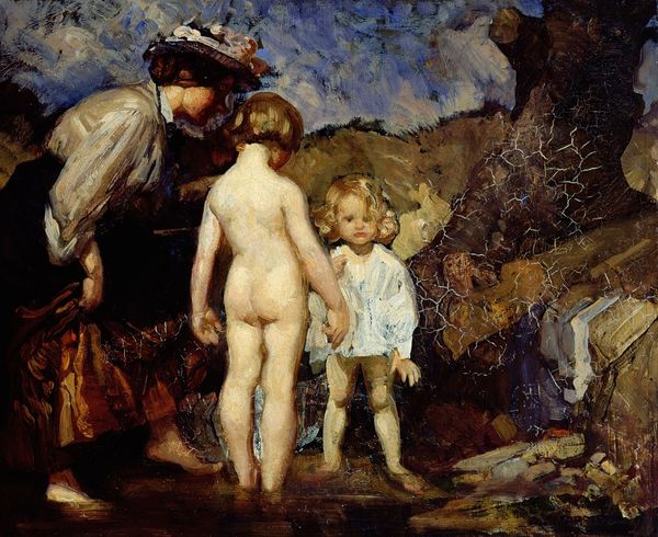 Lovis Corinth presents us with ‘Mother and Child,’ a visceral oil painting depicting a woman reclining and interacting with a young child, their figures illuminated against a somber backdrop. Here we observe the primal bond and the maternal embrace. The pose of the reclining woman, reminiscent of classical depictions of Venus, is here imbued with a raw, earthly quality. This motif echoes across centuries, from ancient fertility figures to Renaissance nudes, each iteration layering new cultural meanings onto the archetypal form. The intimate gesture of connection between mother and child taps into our collective memory, evoking feelings of nurturing, love, and the cycle of life. The image’s emotional power lies in its ability to evoke a sense of timeless connection. The vulnerability of the figures, combined with the gestural brushwork, engages viewers on a deep, subconscious level, stirring primal emotions tied to family, protection, and the enduring human experience. Thus, the cyclical return of motifs like the maternal figure reveals the non-linear progression of symbols, continually evolving and resurfacing through time.