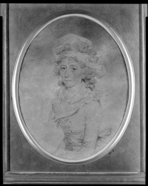 This is Nathaniel Rogers's "Portrait of a Girl," a delicate watercolor on ivory. The composition presents a young girl, rendered with remarkable precision. Rogers masterfully uses soft gradations of light and shadow to model her face, achieving a lifelike quality within the small dimensions of the portrait. The texture of her hair is suggested through fine, controlled brushstrokes. The portrait engages with the semiotics of portraiture, using visual codes to communicate status and character. The girl's simple yet elegant dress and the small bouquet she holds imply innocence and purity. Rogers's work reflects a broader artistic and philosophical interest in capturing the essence of the individual. Notice how the formal elements – the subtle color palette, the smooth surface, and the balanced composition – work together to create an intimate and idealized image. This artwork remains a site of ongoing interpretation.