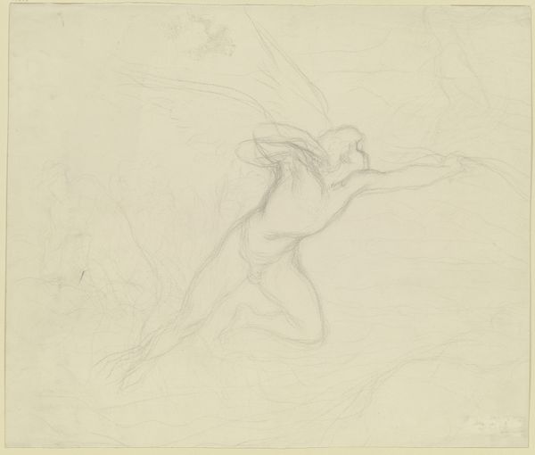 Editor: So, this is Victor Müller’s pencil sketch of Ophelia, probably created sometime between 1868 and 1871. The Städel Museum houses it. There’s something incredibly delicate and melancholic about it, even though it’s just a sketch. How do you see this piece? Curator: Delicate, yes. It's almost as if Müller is trying to capture not just Ophelia’s likeness, but the very essence of her fading spirit. You know, Shakespeare’s Ophelia has always haunted the Romantic imagination. Tell me, what catches your eye first? Is it her pose, the implied narrative, perhaps something else? Editor: I think it's the lack of definition. She’s there, but almost disappearing, which perfectly embodies her tragic story. Curator: Exactly! And Müller, he wasn’t just illustrating a scene from *Hamlet*; he was exploring themes of madness, nature, and the ephemeral nature of beauty itself. There's a sense of personal connection, don't you think? He almost invites us to participate in her story, to feel the weight of her sorrow. Makes you wonder what he was going through while drawing this, right? Editor: Definitely! It feels so personal, like a glimpse into Müller's own thoughts on the story. I wouldn't have thought a sketch could be so emotionally resonant. Curator: Isn't it remarkable? It reminds me that art, in its best form, is a conversation, a shared vulnerability between artist and audience. Thank you for noticing those nuances! Editor: Thanks! I learned a lot by taking a closer look, and considering that fragility. I won't see sketches in the same way again!