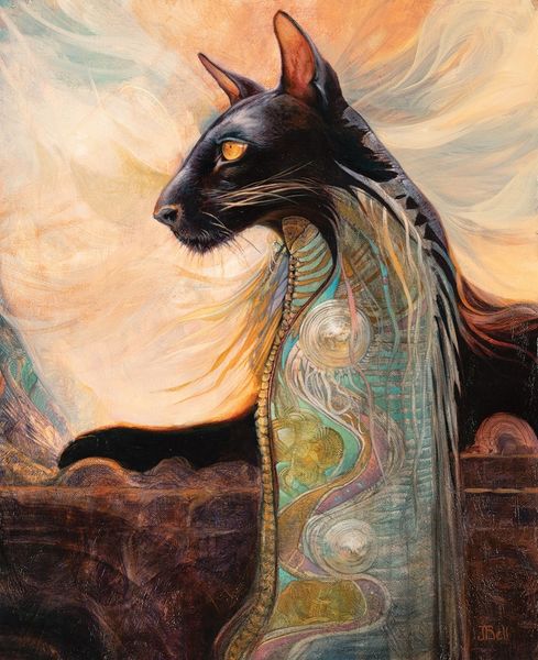 Stanley Artgerm Lau created 'Luna Moonfang' in the 20th century with digital painting techniques. While not traditional materials, the digital tools have their own materiality. Consider the touch of stylus on tablet, the building of layers in Photoshop, and the artist’s mark-making through the digital interface. The work’s aesthetic comes from Lau's approach, reminiscent of airbrushing and graphic novels. These layered tones and precise details show his technical skill. He balances sharp edges with soft gradients to create a sense of depth. The limited palette and design elements show an understanding of visual balance. Artgerm’s expertise in digital techniques gives the artwork its polished finish. The final print is a result of labor, practice, and the democratization of art through technology. The piece invites us to consider the skill involved in digital art, blurring lines between traditional art and modern digital craft.