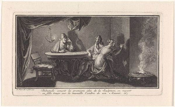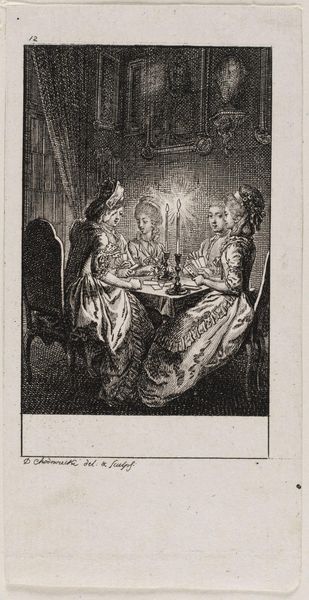 This etching, made by Pieter van den Berge, presents us with a satirical scene laden with symbols of moral decay. The composition is dominated by the presence of a devilish figure looming over a group of fashionable ladies engaged in leisurely activities. The devil, often a symbol of temptation and moral corruption, watches over the ladies. The prominent display of wealth and leisurely activity serves as a critique of vanity. It reminds me of similar depictions in medieval morality plays, where the devil lurks in the background, ready to claim the souls of those who indulge in worldly pleasures. Think of how, in earlier works, demons were depicted tempting hermits, symbolizing the inner battle between virtue and vice. This image, with its demonic presence, taps into a collective fear of moral corruption, reminding us that the allure of pleasure can lead to a slippery slope. The image shows us how symbols evolve, adapting to reflect the concerns and anxieties of different eras.