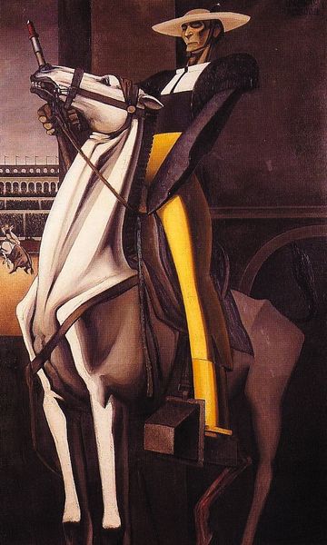 Editor: Here we have Tamara de Lempicka’s "Portrait of Dr. Boucard," painted in 1929. The crisp lines and cool palette give it a really modern feel, but there’s also something almost…sterile about it, perhaps due to the lab coat and equipment. What do you see in this piece? Curator: Beyond the striking Art Deco style, it's crucial to consider the role of science and technology in the 1920s. There was an immense faith placed in scientific advancement, almost a utopian vision. Lempicka, a female artist in a male-dominated world, positions Dr. Boucard as a figure of authority and progress. Does that image of a scientist, the "discoverer," resonate the same way today? Editor: I see what you mean. It definitely makes you consider the power dynamics. And the clean, almost clinical aesthetic… Did that have any relation to, say, ideas about eugenics that were floating around then? Curator: That’s a critical lens to bring. The anxieties about purity, progress, and control over the human body were deeply embedded in the interwar period. How does seeing the painting through that lens change your perspective on the subject's posture, the geometric precision of the background? Editor: It definitely adds another layer. The sharp angles suddenly seem less about streamlined modernity and more about a kind of cold, detached control. Curator: Precisely! It highlights the ambiguities inherent in technological advancement and artistic representation, prompting us to question whose visions of the future are being validated. Considering it within the discourse on scientific authority really shifts its meaning, doesn't it? Editor: Absolutely. I had only been thinking of it formally, but this contextual information brings so much more. I’ll never look at another portrait the same way again! Curator: That’s the goal! Recognizing the painting as part of these conversations invites a far more enriching encounter.