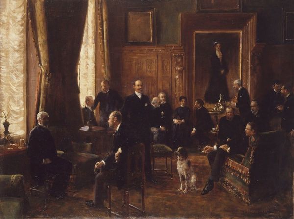 Boris Kustodiev painted this group portrait of painters of the World of Art, an artistic movement, in the early 20th century. Russia, at this time, was a society steeped in tradition, yet on the cusp of revolutionary change. The members of the World of Art sought to synthesize contemporary aesthetic movements with traditional Russian art. Looking at the painting, it becomes clear that this circle was exclusively male, and most likely upper-middle class. The portrait invites questions about who is included and excluded from the narrative of Russian art. Each man is carefully posed, and their expressions are difficult to read. We wonder, what kind of creative power dynamics were at play? The work provides a window into a specific cultural moment, and the complex interplay of tradition, identity, and artistic expression. It prompts us to consider whose stories are told and whose are left out.