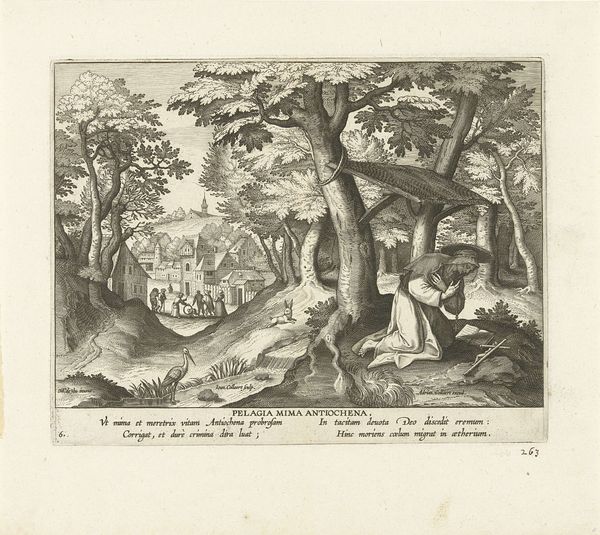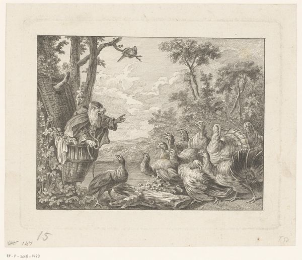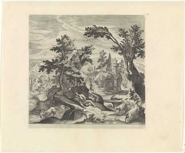 Cesare Fantetti created this print, "God Appears to Moses in the Burning Bush," during the latter half of the 17th century, a period marked by religious and political upheaval in Europe. The image presents a pivotal scene from the Book of Exodus. Moses kneels, his face hidden in his hands, overwhelmed by the divine presence emanating from a burning bush. The depiction of God emerging from the flames reflects the prevalent theological interpretations of the time, yet Fantetti’s rendering also invites contemplation on the nature of revelation and authority. Consider the emotional weight of this encounter, and Moses’s internal struggle as he is chosen to lead his people out of slavery. Fantetti captures this moment of divine communication while subtly addressing the socio-political tensions of his era, prompting viewers to reflect on themes of liberation, obedience, and the power dynamics between the divine and the human.