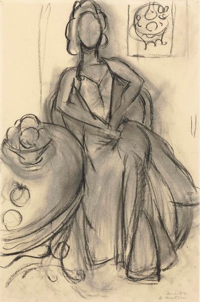Editor: This is "Girl in a White Dress" by Joan González, held at the Tate. I’m struck by the contrast between the lightness of the girl and the darkness surrounding her. What do you see in this piece? Curator: It evokes a powerful sense of duality, doesn’t it? The girl's white dress, a symbol of purity and innocence, is contrasted against the encroaching darkness, perhaps hinting at the complexities of life, or the shadow of societal expectations on young women. Notice how the background flattens into a chessboard; what might that suggest? Editor: Maybe life's a game, or choices that are black and white? Thank you, I’m noticing so much more now! Curator: Indeed. Art invites such contemplations, a mirror reflecting our shared cultural memory.