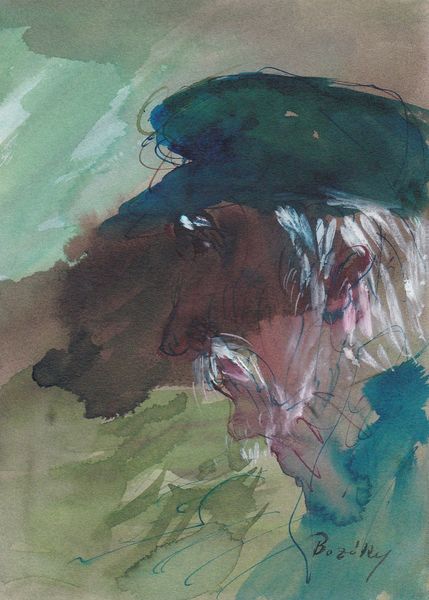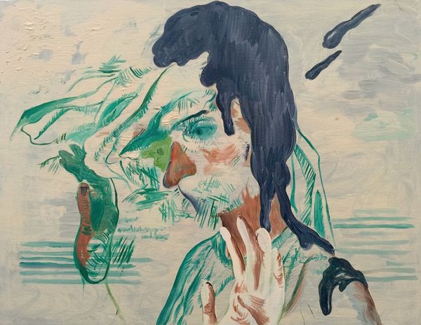 Curator: Giovanni Boldini, known for his portraits of fashionable Parisian women, likely rendered this artwork titled "Female Profile." Its ethereal quality hints at his adept handling of watercolor. What do you make of this composition, at first glance? Editor: Well, immediately I'm struck by the atmospheric haziness, and how the planes of depth seem almost to collapse into one another. There’s a lovely tension between the defined profile of the woman and the more abstract rendering of what might be a landscape setting. Curator: Absolutely, and if we consider Boldini's historical context, as a documenter of the Belle Époque, what narrative do we glimpse through this “profile?" Is she simply an anonymous face, or does she embody the shifting roles and expectations of women during this transformative period? Her subtle gaze, neither confrontational nor demure, feels decidedly modern. Editor: I agree that the gaze feels important here. And the colour is beautifully restrained, with the purples of her face subtly offset against the dominant greens of the background. How would you interpret this wash of green? It almost overwhelms the subject! Curator: The greenery serves as both backdrop and metaphorical enclosure. Boldini, though celebrated, often painted within the confines of societal expectations. Here, he seems to subtly challenge them, perhaps placing his sitter on the cusp of societal change, visible but still entangled. Consider how new industries offered new opportunities for women even as old norms of conduct tried to curtail these ambitions. Editor: That resonates. Perhaps, visually, we're seeing a literal "breaking through," using colour, line and form to symbolize that dynamic of restraint and liberation. Even the sketchy quality speaks of transition and an unfinished narrative. Curator: Indeed, it reminds us that representation itself is never static. By depicting a "profile" rather than a full portrait, Boldini hints at stories left untold, or, in fact, still being written. Editor: It's that incompleteness, formally echoed through the unfinished painting style, that gives this work its quiet power. The open form lends it this incredible air of transience and melancholy. Curator: Considering this interplay between visibility and societal limitation really alters how we interpret seemingly straightforward portraiture. It forces us to consider how female subjects have historically been framed – both literally and figuratively – in art history. Editor: A fascinating example of how studying visual elements through a formal lens offers an elegant access point into broader narratives about the subjects depicted and those creating the depictions! Curator: Yes, and examining those larger histories grants greater depth and significance to elements of structure, medium and composition that might otherwise seem merely aesthetic or inconsequential.