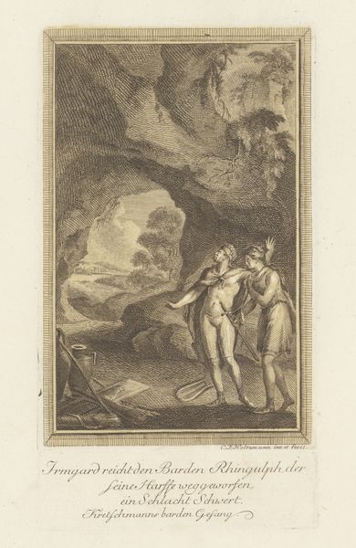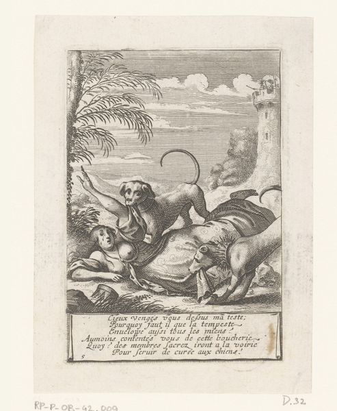 This print, “Amphitrite wordt ontvoerd door dolfijnen,” was made by Pierre Audouin, sometime between the late 18th and early 19th century. It’s an engraving, meaning the artist would have used a tool called a burin to carve lines into a metal plate, which was then inked and pressed onto paper. The fine lines that define the figures and the landscape, showcase the artist's skill and the labor-intensive nature of this reproductive process. Engravings like this were often made after other artworks, to disseminate images widely. In this case, the subject is a classical myth, rendered in a crisp, graphic style. But the material itself carries cultural significance. The copperplate engraving was a key technology for mass communication, allowing images and information to circulate widely in a way that was previously impossible. So, in a way, this delicate print is a product of an early form of mass media. It reminds us that even seemingly high-art objects are often deeply entwined with the social and economic conditions of their time.