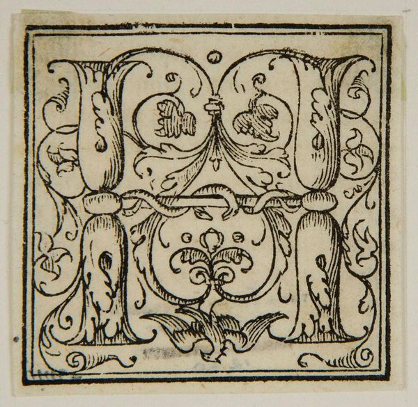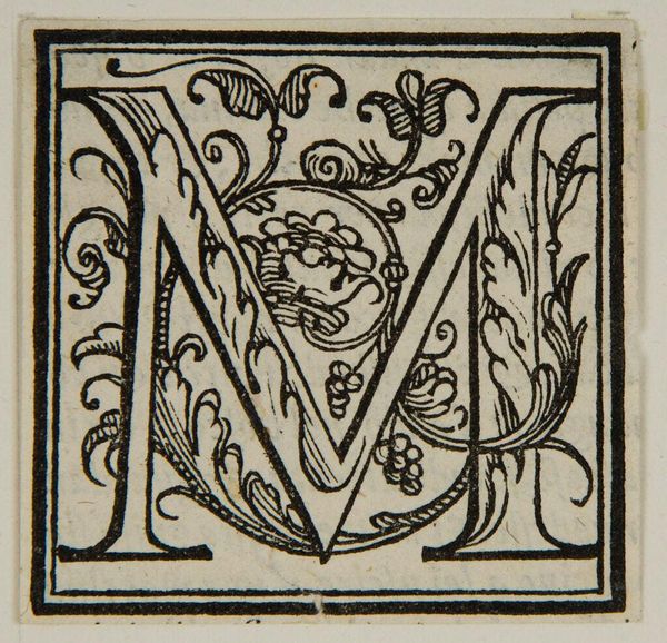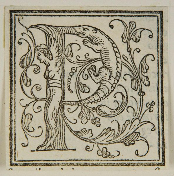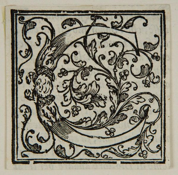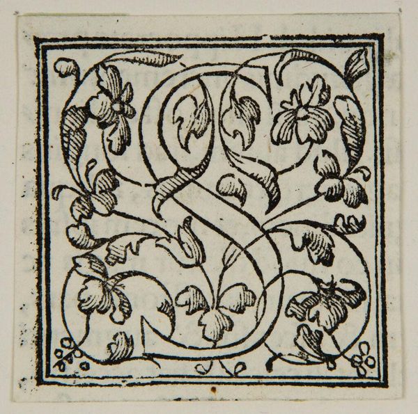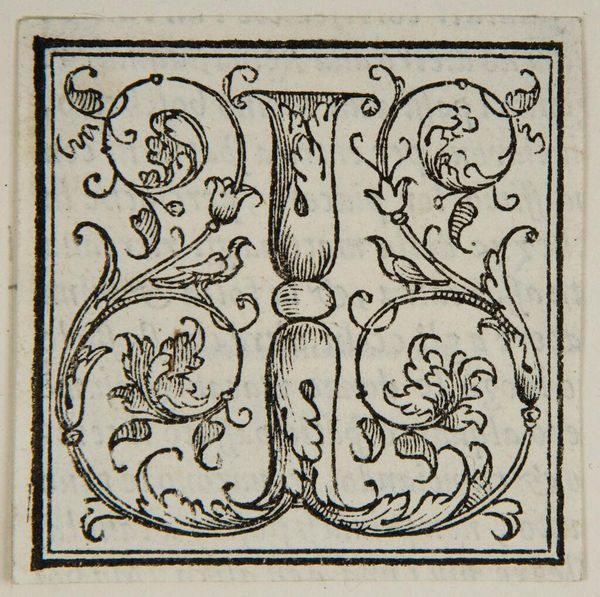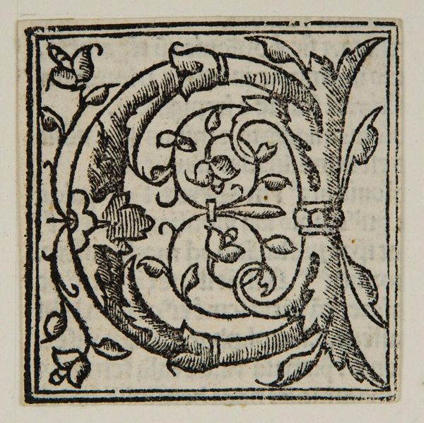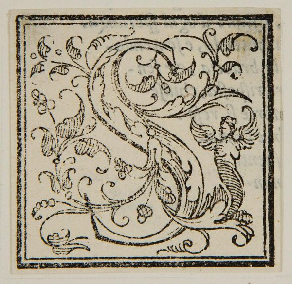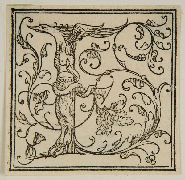 Curator: This woodcut, titled "Initial L," is an example of the decorative initials often found in early printed books. The artist is, sadly, unknown. Editor: It has a charmingly naive quality. The letterform itself is so rigid, but the floral designs surrounding it feel almost chaotic, as if life is bursting from confinement. Curator: Exactly! These initials weren't just decoration; they marked entry points into significant texts, framing narratives and creating hierarchies of knowledge. This particular L is populated with what appears to be a cherubic figure nestled within vine work. Editor: The vines suggest fertility and growth, common symbols in Renaissance art. The cherub could also represent innocence or divine inspiration. It's interesting how these symbols, initially religious, were often adopted into secular contexts, reflecting changing societal values. Curator: Precisely! The negotiation between the sacred and secular is what defines the era for me. Thank you for that illuminating observation. Editor: Thank you. Looking closely at these images reminds us how deeply embedded symbols are within our cultural heritage.