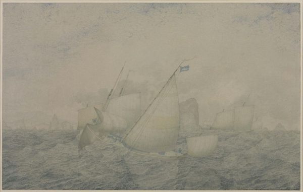 Hercules Brabazon Brabazon created this watercolour, 'Mouth of the Humber', with an expressive layering of translucent washes. The overall effect is atmospheric, evoking a sense of the sublime. The composition is dominated by broad, horizontal sweeps of colour that define the sea and sky. Brabazon uses loose brushstrokes to suggest the turbulent movement of the water and the ominous presence of the storm clouds above. Notice how the artist blurs the distinction between the sea and the sky by mirroring the darker tones of the clouds in the waves below. This gives the image a feeling of instability. The formal structure of the painting—with its emphasis on gestural mark-making and tonal harmony—moves towards abstraction. Here, Brabazon seems less interested in the literal depiction of the scene. Instead he focuses on the emotional impact of the dramatic weather conditions. The visible brushwork acts as a reminder of the artist's physical engagement with the medium and its ability to convey both the beauty and the terror of nature.