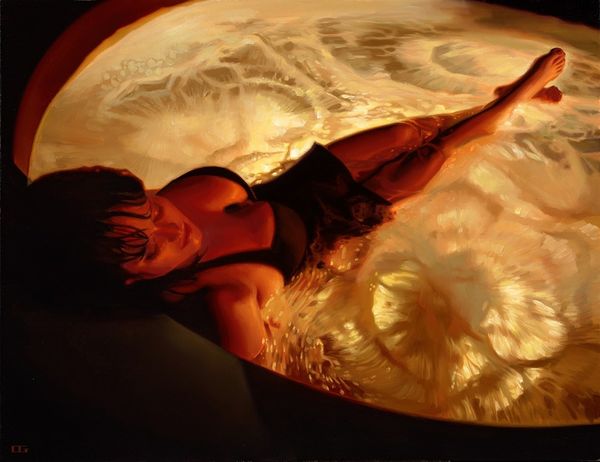 Roberto Ferri's "Ossessione" is a painting made with oil on canvas, though I don't have an exact date for it. There is something about the sheen on the skin in this painting that gets me. Notice how the body arches away from that zodiac wheel—it's almost as if the flesh is resisting some unseen force. The paint application is so smooth, and it gives the skin a cool, almost marble-like feel. The artist plays with light and shadow here so well. I keep coming back to that drape of green fabric and that small white ball hovering nearby. Is it a detail from the wheel, or a moon? I love the way Ferri lets these little mysteries linger. I can't help thinking about Caravaggio when I look at this painting, especially the way he used light to create drama, but Ferri brings his own contemporary twist to it. With a piece like this, the questions it raises are more interesting than any answers it might offer.